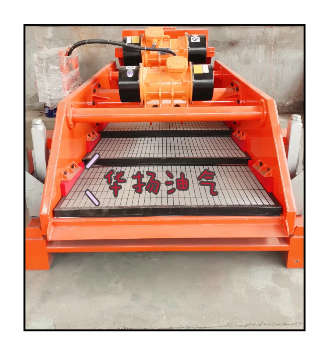 本次為客戶提供的HYZS585-4型振動(dòng)篩,振動(dòng)軌跡為直線,配4張復(fù)合框架篩網(wǎng)、2臺(tái)振動(dòng)電機(jī),主要作用是將大顆粒鉆屑等固體篩分出來,帶有細(xì)小顆粒經(jīng)過處理的干凈泥漿將落到振動(dòng)篩倉等待下一級(jí)處理。分離出去的大的固體顆粒 (通常為74微米以上)在激振力下被輸送到篩床外,排到罐外。